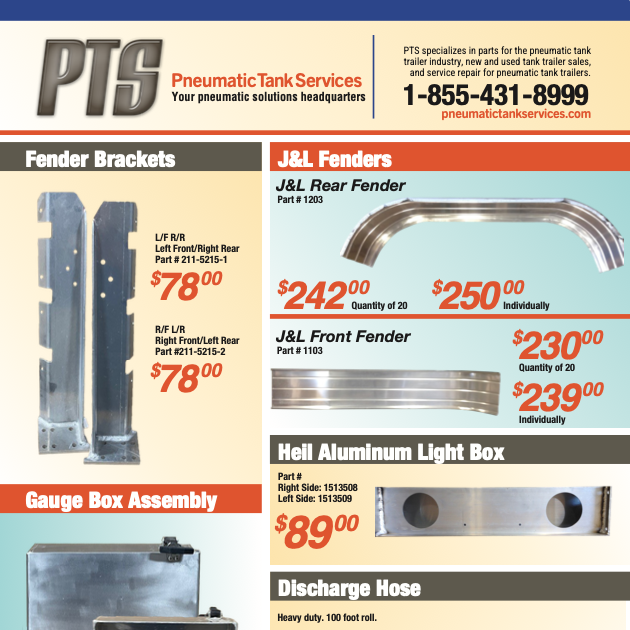 PTS specializes in parts for the pneumatic tank trailer industry, new and used tank trailer sales, and service repair for pneumatic tank trailers.